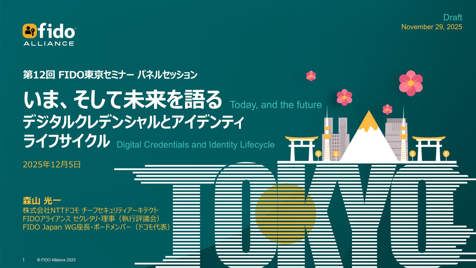 Xではお知らせしておりましたが (ブログを書く時間が取れないことがままあるので、Xもフォローしていただければ幸いです)、本日は、第12回 FIDO東京セミナー ~パスワードのいらない世界へ~ の日です。~「パスキー」によるフィッシング対策と最新動向~をカンファレンス全体ではご紹介するプログラム(下記参照)になっています。