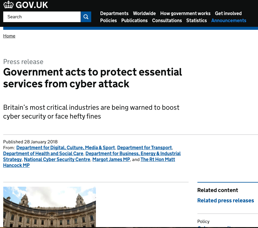 - Government acts to protect essential services from cyber attack — https://www.gov.uk/government/news/government-acts-to-protect-essential-services-from-cyber-attack